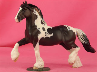 First up, this is the BOTW Toitalis.... Hard to believe isn't it? I just love this mold! This guy is now an iberian warmblood, all of his legs and feet have been redone into a forward working trot, and he has a new fishnet mane, more iberian profile, and new tail. He will be on two little bases, not the pop lids of course.